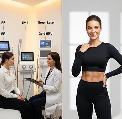 We use cutting-edge technologies such as EMS with HIFEM & RF technology Green Laser, Radio frequency skin tightening, and Gold Hifu, ultrasound cavitation to help reduce stubborn fat, smooth cellulite, and enhance natural body contours. Each treatment is performed by certified professionals in a modern, comfortable environment focused on your safety and satisfaction.
